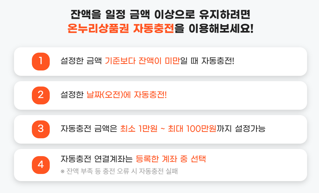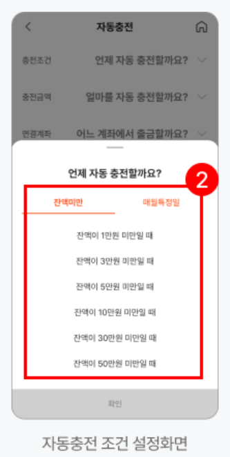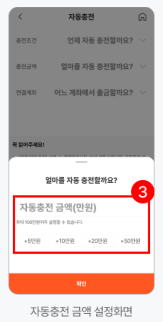 일정 금액 이하가 되면 자동 충전되도록 설정 가능하여 편리하게 이용 가능!