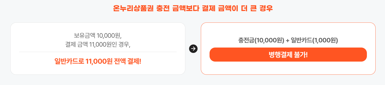 - 결제 금액이 충전 금액보다 클 경우, 일반 카드로 전액 결제