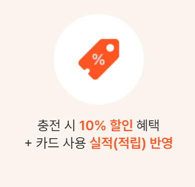 - 예를 들어, 10만 원 충전 시 9만 원만 결제하면 됨