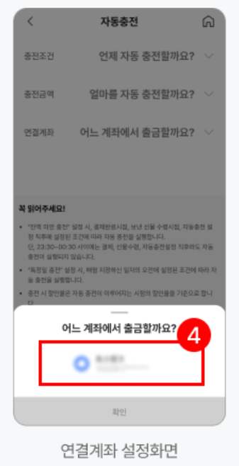 2. 등록된 본인 계좌 중 충전 계좌 선택