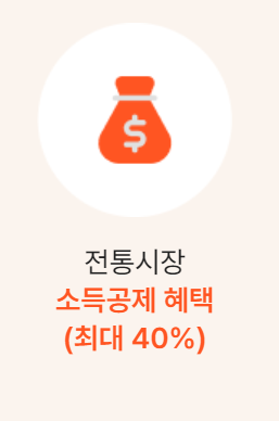 - 전통시장 사용금액에 대해 최대 40% 소득공제 혜택 적용