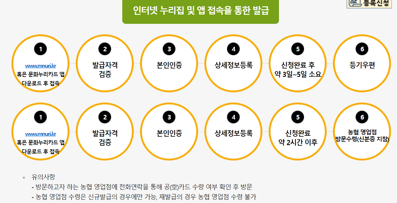 - 온라인으로 신청 후 약 2시간 이후 선택한 농협 영업점 방문(신분증 지참)