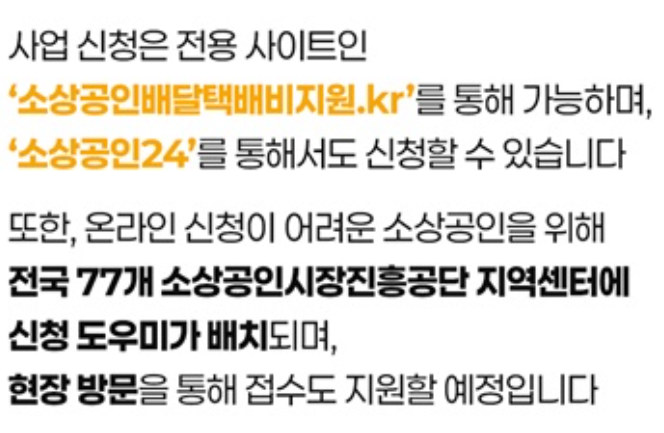 배달·택배비 지원사업 신청은 온라인 또는 현장 방문 접수로 가능합니다.