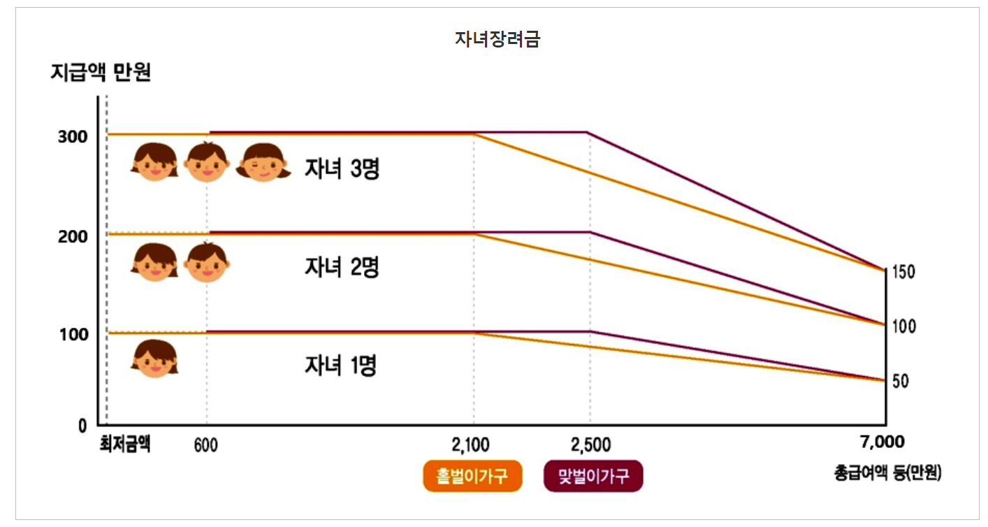 정확한 소득기준은 가구 구성과 자녀 수 등에 따라 달라질 수 있습니다.