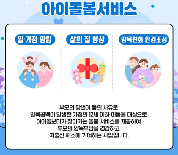 아이돌봄서비스는 부모님의 양육 부담을 줄이고 일·가정 양립을 돕기 위해 운영되는 돌봄 지원 서비스입니다.