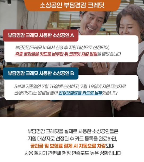 중소벤처기업부는 소상공인의 경영 부담을 덜기 위해 ‘부담경감 크레딧’을 포함한 3대 지원사업을 시행하고 있습니다.