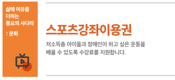 경제적 여건으로 인해 스포츠 활동을 하기 어려운 유·청소년과 장애인을 위해 정부에서는 스포츠강좌 이용권 제도를 운영하고 있습니다.